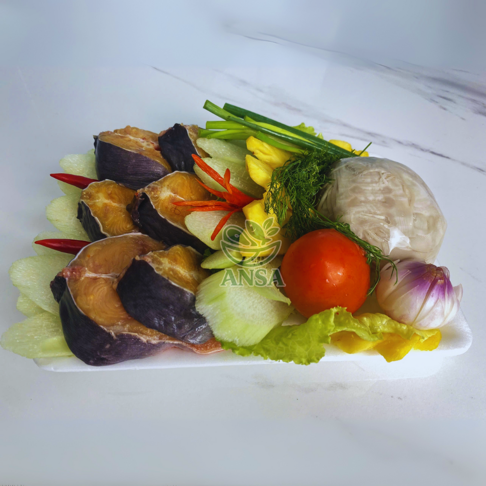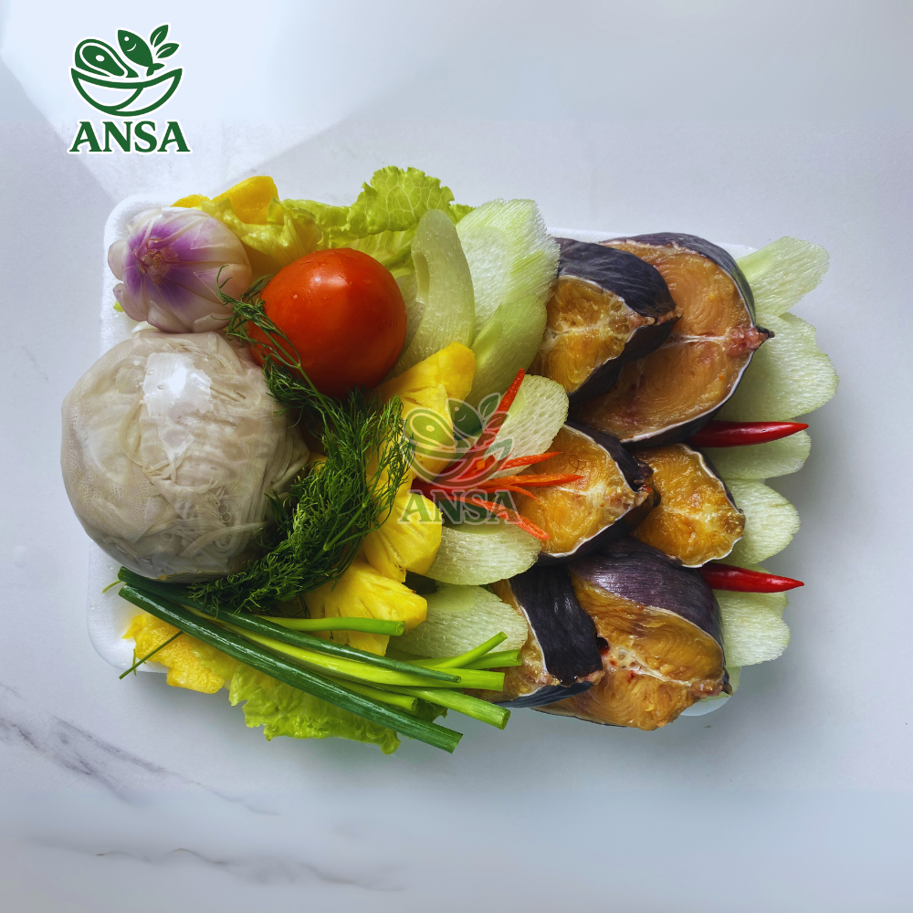 Sau 5 phút khi cá chín, cho cà chua và dứa đã xào cùng số cà chua còn lại vào nấu tiếp. Vài phút sau, thêm giá đỗ, măng, dọc mùng. Trước khi tắt bếp, cho hành, thì là đã thái nhỏ vào nồi canh rồi nêm nếm gia vị vừa ăn.